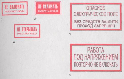 Для предупреждения об опасности воздействия ЭП на персонал и запрещения передвижения без средств защиты ОПАСНОЕ ЭЛЕКТРИЧЕСКОЕ ПОЛЕ БЕЗ СРЕДСТВ ЗАЩИТЫ ПРОХОД ЗАПРЕЩЕН |
