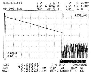 ОВ одномодовое; коэффициент преломления – 1,4675; километрическое затухание при измерении на длине волны = 1,55 не более 0,24 dВ. Изготовитель - «Siecor»