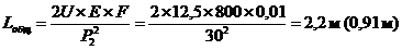 S ≥ У/X (V · п1 · п2)2/q = (12 : 8,5) · (1,2 - 1,1 · 1,1)2 : 9,81 ≥ 0,3 м.