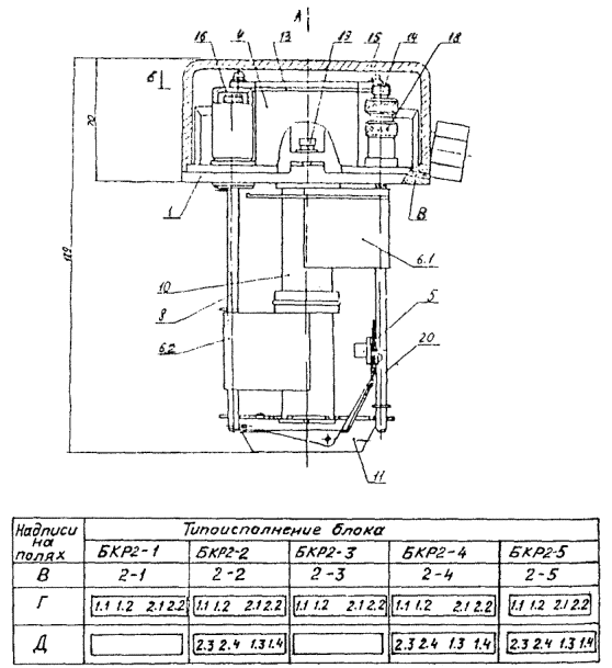 Реле серии ВF снабжено устройством 11 для контроля работоспособности обоих элементов и контактов реле. Оно состоит из кнопки, рейки с выступами, возвратной пружины и рамки. В условиях эксплуатации кнопка закрыта колпачком с винтовой резьбой. На табличке около кнопки устройства контроля изображены два положения кнопки с надписями «Сигнал» и «Отключение». При нажатии на кнопку рейка перемещается вниз в направляющей рамке, и верхний выступ нажимает на держатель верхнего поплавка, который опускается и обеспечивает замыкание сигнального контакта реле. При дальнейшем нажатии на кнопку опускается нижний поплавок под действием нижнего выступа и отключающий контакт реле также замыкается. Пластина от устройства контроля не опробуется. Отпускание кнопки приводит к возврату устройства контроля под действием возвратной пружины, при этом поплавки реле всплывают, и оба контакта размыкаются. В крышке реле имеется кран для отбора газа. В нижней части корпуса имеется отверстие для слива загрязненного масла, закрытое пробкой с винтовой резьбой (в поздних выпусках реле это отверстие отсутствует).