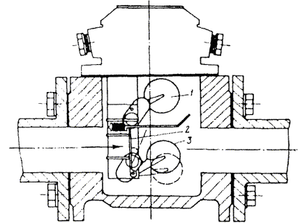 Газовые реле имеют герметически закрытый корпус, устанавливаемый в маслопроводе между баком трансформатора и расширителем. На рисунке 1 показан упрощенный эскиз варианта конструкции такого реле. Реагирующий блок реле имеет три основных элемента: сигнальный 1 и отключающие 2, 3 (элементы 1 и 3 - поплавки, 2 - напорная пластина), каждый из которых срабатывает при определенных условиях.