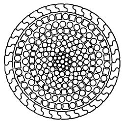 1. Настоящий стандарт распространяется на стальные закрытые подъемные спиральные канаты с одним слоем z-образных и одним, двумя или тремя слоями х-образных проволок. Канаты диаметром от 20 до 38 мм изготавливаются с одним слоем х-образных проволок (черт. 1), диаметром от 40 до 46 мм - с двумя слоями х-образных проволок (черт. 2), диаметром 50 мм - с тремя слоями х-образных проволок (черт. 3).