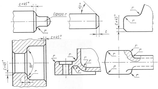 Стандарт не распространяется на размеры радиусов закруглений (сгиба) гнутых деталей, фасок на резьбах, радиусов проточек для выхода резьбообразующего инструмента, фасок и радиусов закруглений шарико- и роликоподшипников и на их сопряжения с валами и корпусами на технологические межоперационные радиусы.