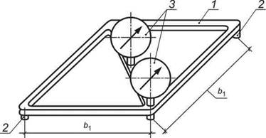 Для обеспечения требуемой схемы приложения нагрузки рекомендуется применять кондуктор (см. рисунки И.2 и И.3). Направляющие кондуктора 1 жестко соединены с нижним нагрузочным устройством 2, выполненным в виде плоской плиты [см. рисунок И.2а)]. Верхнее нагрузочное устройство 4 устанавливают в направляющие кондуктора (см. рисунок И.2). Размеры элементов кондуктора назначают исходя из требований, приведенных в таблице Б.1.