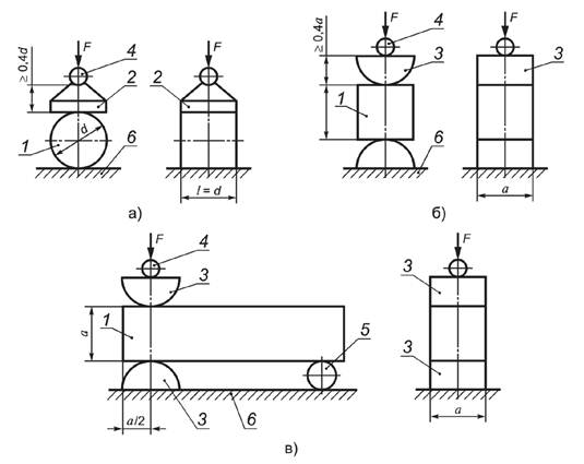 Длина опорных пластин и подушек должна быть не менее размера поперечного сечения образца.