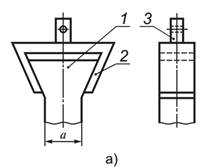 На рисунке К.1а) приведена схема жесткого захвата, в качестве которого допускается использовать опорные части испытательных машин в случае, если их устройство обеспечивает соосность передачи между ними растягивающего усилия.