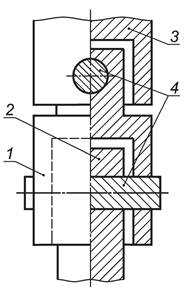 К.4 Для обеспечения соосности передачи усилия между захватами их следует соединять с опорными устройствами испытательной машины через шарнир Гука. Концевой элемент 2 шарнира Гука (см. рисунок К.5) входит в состав захвата, а концевой элемент 3 устанавливают в опорном устройстве испытательной машины.