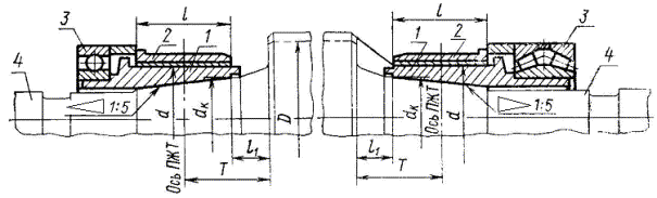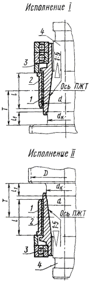 3. Исполнения подшипников в зависимости от диаметра и места установки указаны в табл. 1.