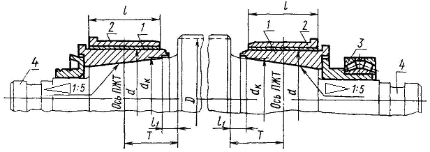 Примечание. Вертикальные подшипники жидкостного трения с основными размерами, указанными в табл. 3, должны применяться для действующих станов до реконструкции. Для новых станов и станов после реконструкции основные размеры на вертикальные подшипники должны соответствовать указанным в табл. 2.