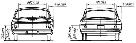 3. Допускается увеличение размера 400 max до 700 max для колесных тракторов класса 1,4 - 2,0 т при обязательном соблюдении размера 400 мм для передних габаритных огней.