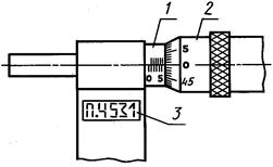 1 - стебель; 2 - нониус, 3 - барабан; 4 - цифровое отсчетное устройство