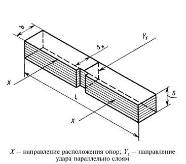 1.4. Для материалов, ударная вязкость которых зависит от направления волокон или слоев, вырезают две группы образцов с главными осями симметрии, параллельно и перпендикулярно основным направлениям. Для каждой из групп испытывают образцы в направлении удара параллельно и перпендикулярно слоям (черт. 3 и 4).