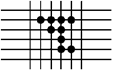 Незначительное отслаивание покрытия в виде мелких чешуек в местах пересечения линий решетки. Нарушение наблюдается не более чем на 5 % поверхности решетки |