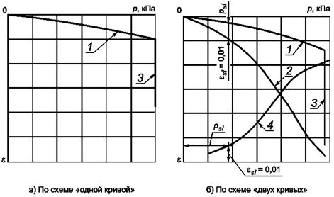 - «двух кривых» - для определения относительной просадочности εsl при различных давлениях, начального просадочного давления psl (см. 7.2).