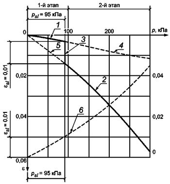 6 - кривая зависимости относительной просадочности εsl от давления на грунт р;