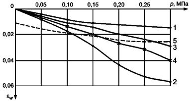 а) График зависимости относительного сжатия грунта при различной влажности от давления