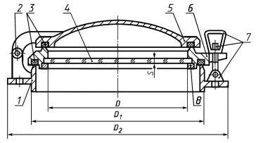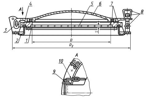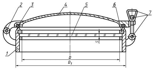 5.6 Три образца от первой партии серийно изготовленных иллюминаторов со штормовыми крышками должны быть испытаны предприятием-изготовителем на механическую прочность без стекла, с закрытой крышкой.