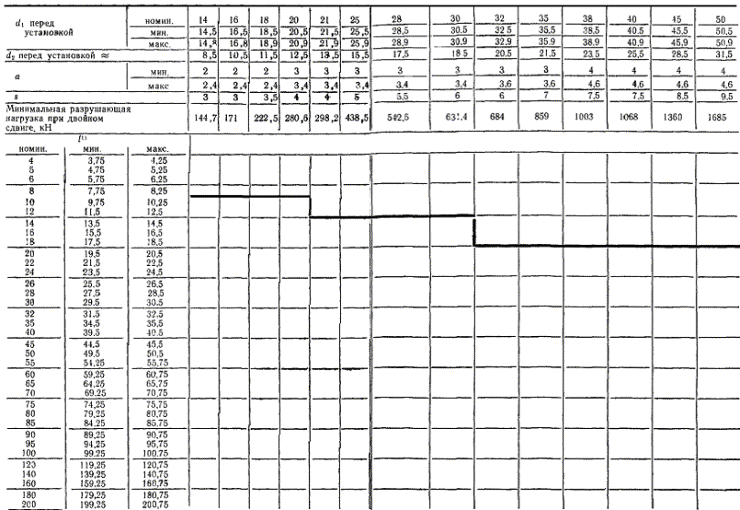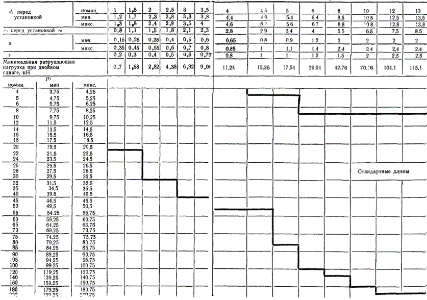 Отверстие под штифт устанавливают равным номинальному диаметру штифта d1. Предельное отклонение отверстия Н12. При установлении в минимальное допустимое отверстие прорезь у штифтов типов А и В не должна полностью закрываться.