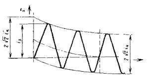 1.1.4. Ток короткого замыкания - ток, протекающий в системе в режиме короткого замыкания. Принципиальный вид кривой изменения во времени тока короткого замыкания в одной фазе трехфазной системы приведен на чертеже.