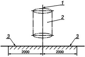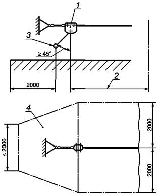 1 - ось подвесного элемента; 2 - зона безопасности; 3 - зона приземления