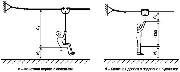 Для канатных дорог с подвесной рукояткой высота С2 должна быть не менее 300 мм, как показано на рисунке 5б.
