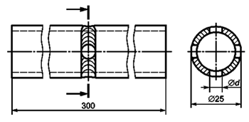 - t - толщина материала контрольного сварного соединения (толщина пластины или стенки трубы);