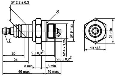 1 - штыревая контактная головка, см. рисунок 6а; 2 - резьбовая контактная головка, см. рисунок 6б; 3 - уплотнительное кольцо