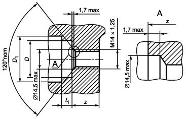 Размеры установочного места в головке цилиндра двигателя под свечу зажигания с плоской опорной поверхностью, с плоской опорной поверхностью и 16 мм шестигранником, компактную с плоской опорной поверхностью должны соответствовать указанным на рисунке А.1 и в таблице А.1; подсвечу с конической опорной поверхностью и компактную с конической опорной поверхностью - на рисунках А.2, А.3 и в таблице А.2.