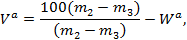 Выход летучих веществ из аналитической пробы испытуемого топлива Vа, выраженный в процентах по массе, вычисляют по формуле