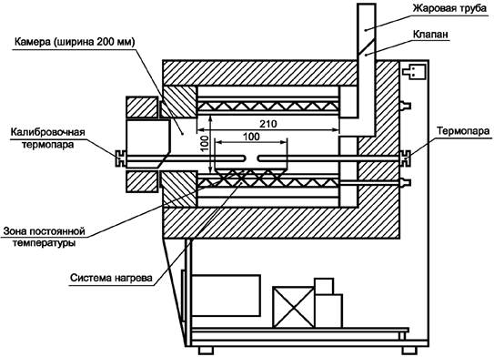 Муфельная печь с электрообогревом и зоной постоянной температуры (900 ± 10) °С. Используют муфель с глухой задней стенкой или отводной трубкой диаметром около 25 мм и длиной 150 мм на задней стенке, как показано на рисунке 1.