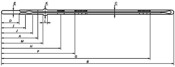 Таблица А3.4 - Характеристики термометров для среднего диапазона температур вспышки в закрытом тигле Пенски-Мартенса (термометр для определения температуры вспышки растительного масла - АСТМ № 88F (88С), АСТМ Е 1, рисунок 5)