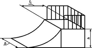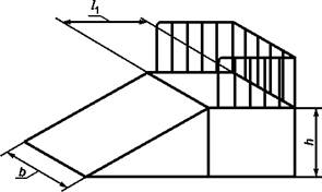 При отсутствии зоны безопасности пайп снабжают бортом, в этом случае ширину пайпа b увеличивают на 1200 мм по сравнению с шириной, указанной в таблице 10. Борт должен соответствовать требованиям 4.5.5.
