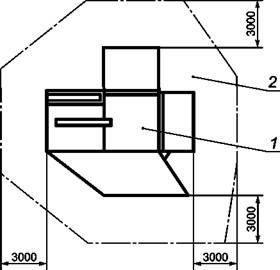 1 - оборудование; 2 - зона безопасности