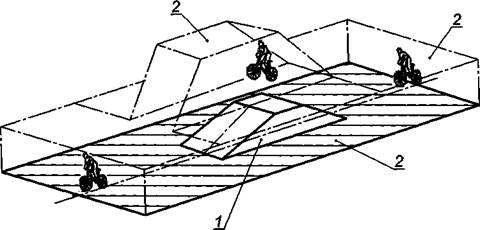 1 - рампа для прыжков; 2 - зона безопасности