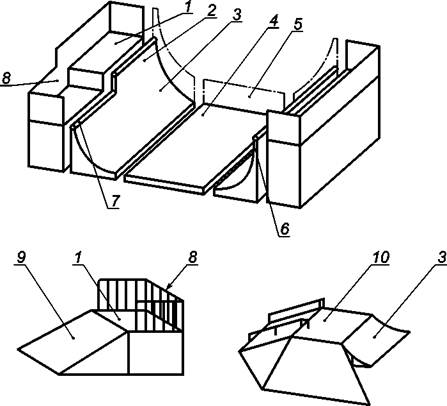 6 - верт; 7 - ребро; 8 - ограждение; 9 - откос; 10