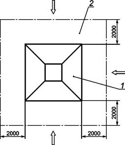 1 - пирамида; 2 - зона безопасности