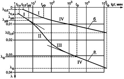 Примечание - Масштаб графика: по горизонтали откладывают время по логарифмической шкале lgt; по вертикали - относительную деформацию l 0,01 - 20 мм.