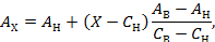 Для промежуточных значений массовых долей потери массы при прокаливании значения показателей точности находят методом линейной интерполяции по формуле