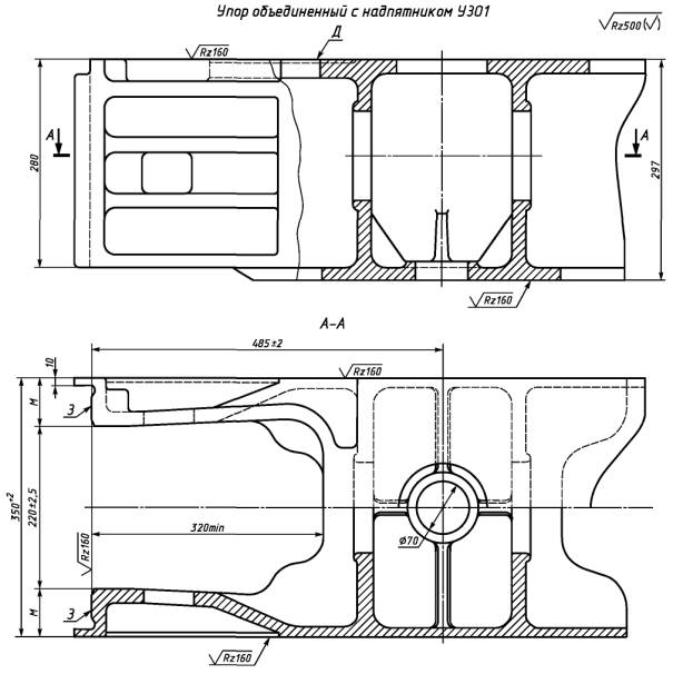 4.3.1 Упоры следует отливать из стали марок 20ГЛ, 20ФЛ, 20ГТЛ, 20Г1ФЛ, 20ФТЛ по ГОСТ 977 и ГОСТ 22703. Допускаемые отклонения элементов от требований к химическому составу для стали всех марок - по ГОСТ 977.