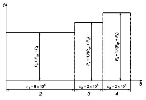- 2-й этап включает 2´106 циклов приложения вертикальных и поперечных сил на основании сил первого этапа. При этом статистические составляющие остаются неизменными, а квазистатические и динамические составляющие умножают на коэффициент 1,2. Затем в течение 0,2´106 циклов прикладывают скручивающие нагрузки, увеличенные в 1,2;
