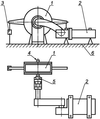 электромагнитный тормоз; 2 - редуктор или комбайн с электродвигателями; 3 - динамометр;
