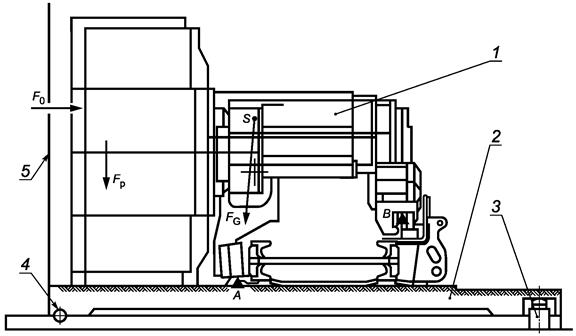 исполнительных органах радиальных FP и осевых F0; 1 - испытательный