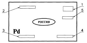 1 - товарный знак предприятия-изготовителя; 2 - номер (шифр) слитка; 3 - массовая доля палладия, %; 4 - масса слитка, г; 5 - год выпуска