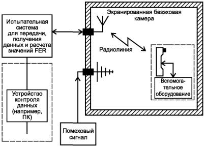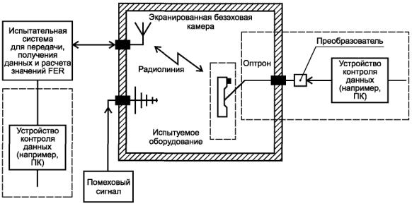 Устройство контроля данных рассматривают как часть испытательной системы. Если необходимо, изготовитель должен принять меры, чтобы связь испытуемого оборудования с устройством контроля данных не оказывала влияния на характеристики воздействующего радиочастотного поля (например, применить ультразвуковой или оптический интерфейс) (см. рисунок С.1).