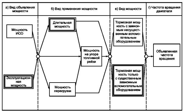 3.13 объявленная мощность на валу отбора мощности: Мощность, объявленная изготовителем на валу отбора мощности двигателя, поставляемого в комплекте с пропульсивной установкой, или на муфте, соединяемой с пропульсивной установкой двигателя, поставляемого с редуктором и/или реверсивной передачей.