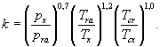 Коэффициент мощности k, необходимый для приведения тормозной мощности от местных окружающих условий к стандартным исходным условиям, определяют как