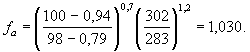 Значение для корректировки от окружающих условий при испытаниях к стандартным исходным условиям рассчитывают следующим образом: