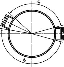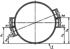 d1 и d2 - расстояние между контрольными точками замков, измеряемое по поверхности трубы
