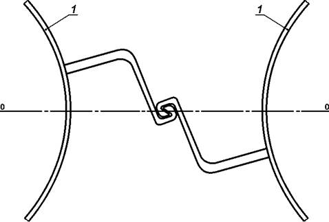 По требованию потребителя изготавливают угловые профили ШТС, в которых замки располагают в двух радиальных плоскостях под требуемым потребителю углом в соответствии с рисунком 2.