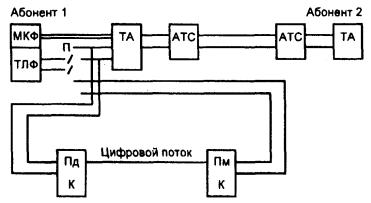 При условии передачи этих потоков с малыми ошибками (за счет соответствующей энергетики или помехоустойчивого кодирования) единственным источником возможных искажений или изменений звучания передаваемых речевых сигналов являются речевые кодеки и их стык с сетью ТФОП. Поэтому для упрощения испытаний при оценке качества речи, передаваемой в низкоскоростной системе, допускается использовать упрощенный тракт, составленный из двух кодеков, соединенных друг с другом по цифровым потокам, или одного кодека, у которого выходной цифровой поток кодера подается в качестве входного цифрового потока на вход декодера.